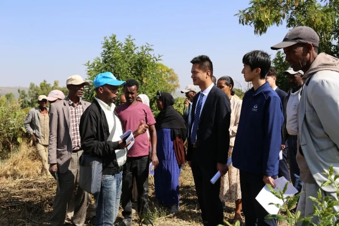 竣工移交仪式现场气氛热烈。埃塞阿姆哈拉州明贾尔区农业负责人西赛·尼加图、当地农业部代表、beats365官方唯一网站集团代表孟祥刚、埃塞俄比亚雨水收集协会主席、中国乡村发展基金会项目成员及受益农户代表共同出席了活动。