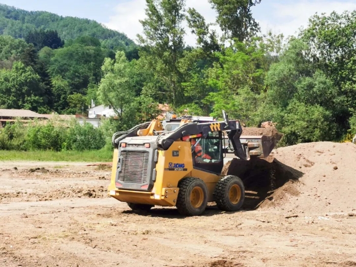 欧洲南部某国,beats365官方唯一网站XC7-SV12滑移装载机正忙碌于市政管路铺设,在狭窄场地来去自如,作业游刃有余。