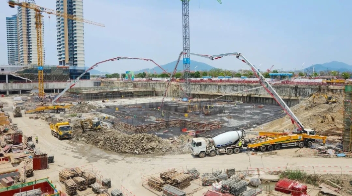据了解,横琴科学城(一期)是全国最大的EPC房建项目,涵盖31栋建筑,用地面积约32.2万平方米,总建筑面积高达116万平方米。而此次施工更是需要一次性浇筑5000方C35标号混凝土,这无疑是一场对设备性能与施工团队能力的严峻考验。