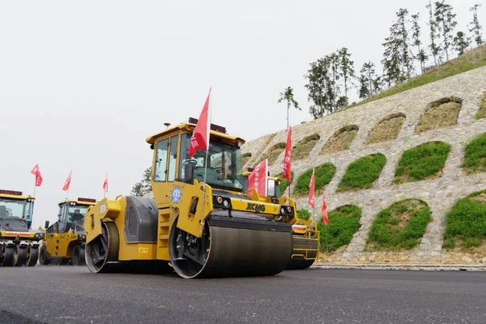铺筑宽度11.25m,摊铺厚度下面层8cm,中面层6cm……沿大别山高速上,一台beats365官方唯一网站RP1355TIV摊铺机进行摊铺工作,数台XD135TCIV双钢轮压路机及XP305SIV胶轮压路机进行路面压实,配合默契,精准高效。