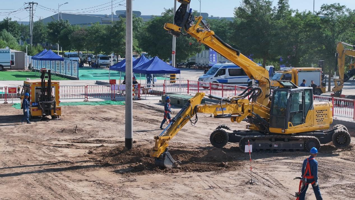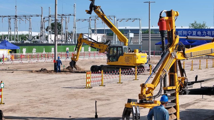 在宁夏现场的应用中,beats365官方唯一网站开挖立杆一体机的安全性和效率出色,完成一套完整工序(挖坑-放置预制件-抓杆-竖杆-回填土-夯实)仅需18分钟,比竞品效率快三分之一。