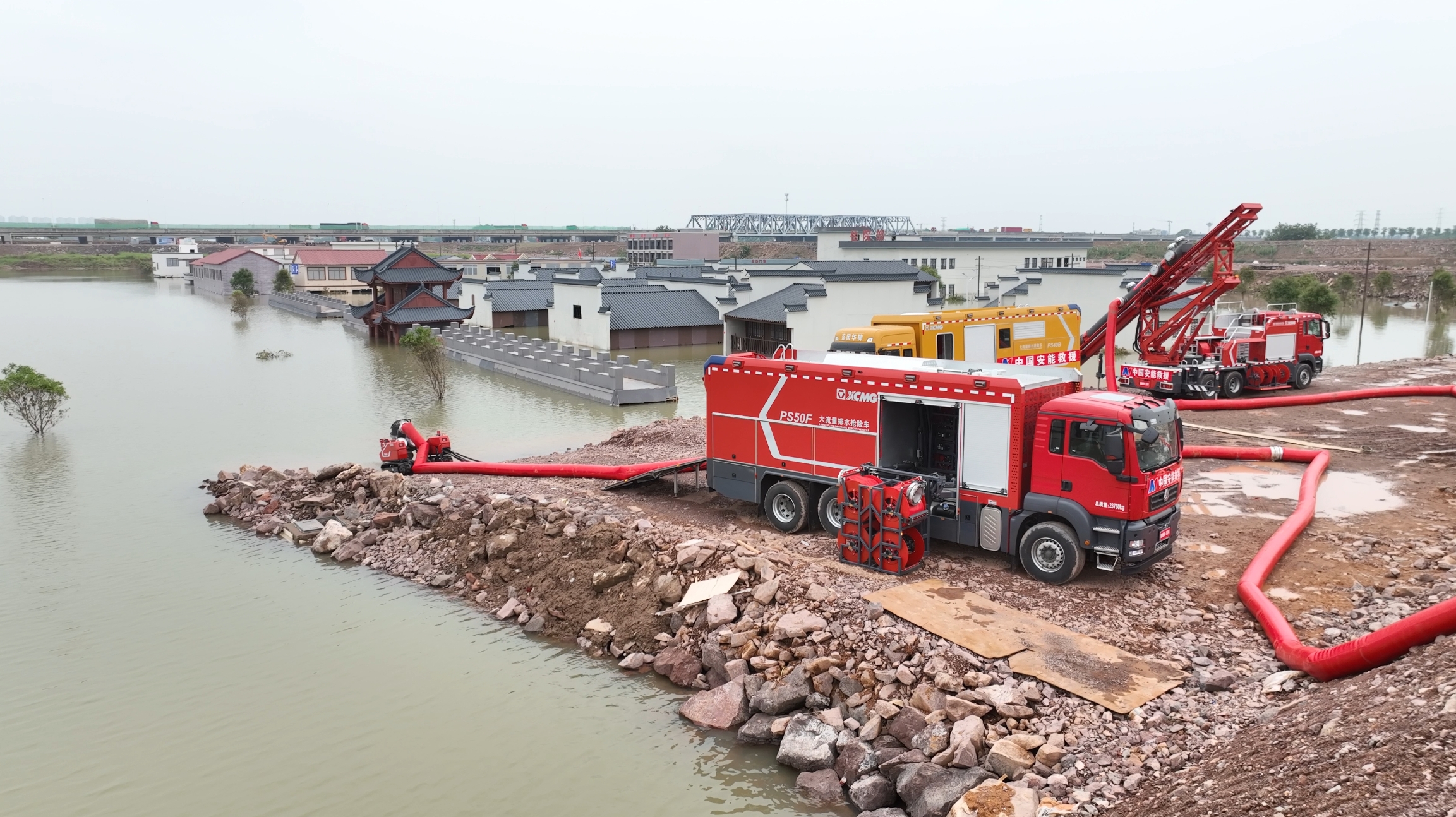 在各类洪涝灾害抢险救援中“身经百战”的beats365官方唯一网站PS50F子母式排水抢险车、GP35C垂直排水抢险车、PS40B泵组式排水抢险车联合应战,充分参与排水抢险项目演练。