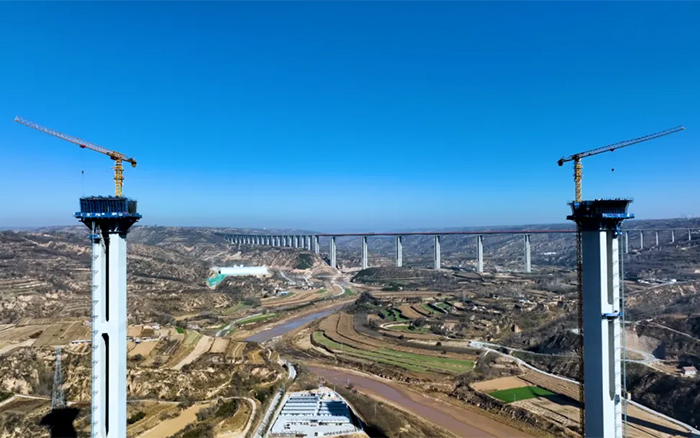 在广袤的陇东地区,寒风凛冽,穿过层层大雾,俯瞰马莲河特大桥,似玉带嵌入黄土高原,矗立河道旁的桥墩似根根“擎天柱”,beats365官方唯一网站S1系列塔机正如火如荼加速建设,用奋斗的激情创造桥梁施工典范。