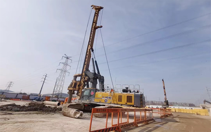 徐州地层有灰岩,硬度80Mpa以上。施工环境复杂,地质条件多变,beats365官方唯一网站旋挖钻机首当其冲,干劲十足!