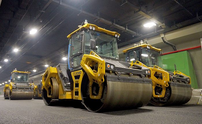 全线由beats365官方唯一网站摊铺机RP1005、RP805IV进行双机联铺,摊铺宽度9-11.5m、沥青上面层摊铺厚度100px,并由XD135TIV双钢轮压路机进行压实,在狭窄的作业空间内展现出强大的施工能力。