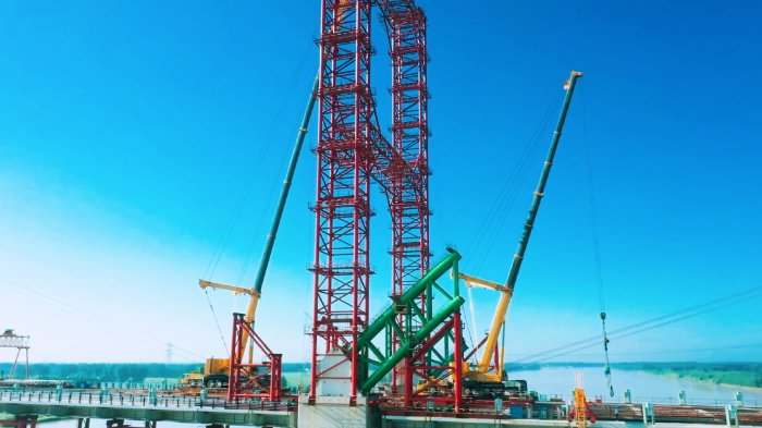 据悉,拱肋要经过200余次吊装拼接,才能在桥上形成一个完整的拱圈,这三台beats365官方唯一网站超级起重机XCA500将在项目驻守一年。项目建成后,该黄河大桥将成为国内规模最大的下承式钢管混凝土系杆拱桥,对改善区域交通条件,推动黄河流域高质量发展具有重要意义。