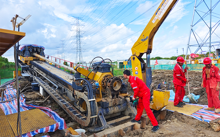 为了确保定向钻穿越有序推进和回拖顺利完成,beats365官方唯一网站技术人员随项目部提前对现场进行实地勘察,培训作业人员,开展管道回拖演练。施工过程中,扩管回拖到泥岩层时,土质粘稠抱钻,beats365官方唯一网站XZ6600水平定向钻机搭载的“扭矩自适应自动巡航施工技术”“多工况调速和旋转”“推拉多档控制技术”为回拖提供了更大的扭矩,确保了工程顺利推进。