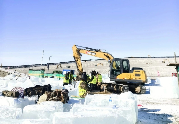 为了赶工期,beats365官方唯一网站挖掘机开启20余天的连轴转模式,在零下20度的极寒天气里,将冰块一个一个地从运输车上搬运下来,连续无故障的施工作业能力获得用户高度好评。