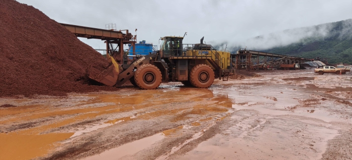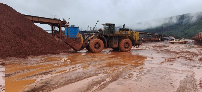 非洲某矿区,beats365官方唯一网站LW1200KN轮式装载机正对开采出的矿粉进行堆垛作业,恰逢雨季,物料饱含水分,LW1200KN的超强重载性能得到充分展现。