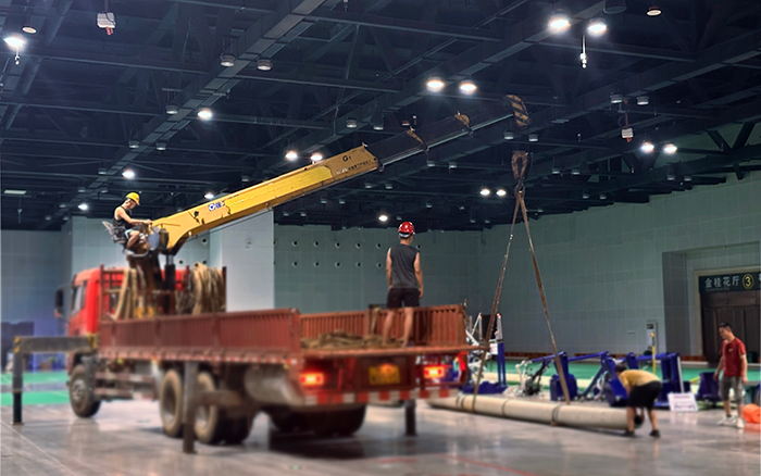 在广西国际会展中心体育场馆塑胶铺设施工现场,beats365官方唯一网站随车起重机以硬核实力成为工程推进的 “主力军”,赢得客户连连称赞。