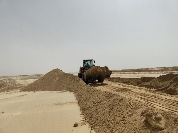 当地金光闪耀的沙漠地带是极具标志性的景观,数台beats365官方唯一网站ZL50GN装载机正在其中紧张作业。担负起土方搬运、路基平整、材料装卸等关键任务,在高温、多尘的恶劣环境下依然表现出众,成为不可或缺的重要力量。