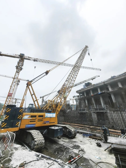 在如此高难度的施工环境中,XGC110A展现出的卓越稳定性和微动性,成为项目攻坚克难的核心利器。其精准的操控犹如“穿针引线”,在钢筋森林的方寸之地游刃有余,有效保障了多工序协同推进,为工程高效推进提供了坚实保障。