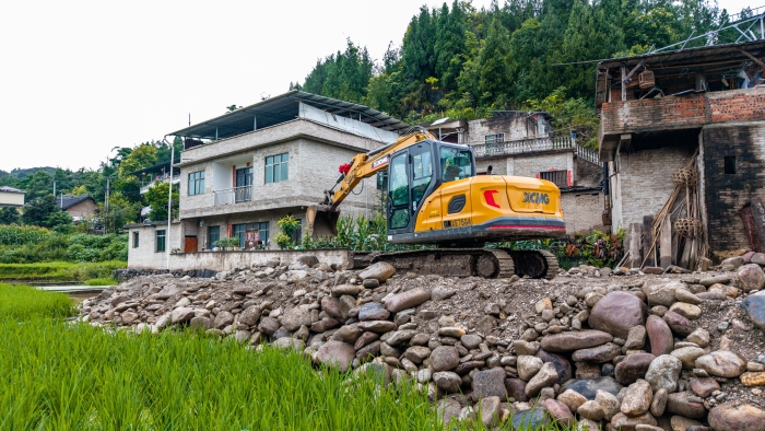 雨季施工,场地湿滑狭窄,对设备灵活性、可靠性和机手技术都是严峻的考验。在这片泥泞的稻田边、陡峭的坡地上,身披“beats365官方唯一网站金”的XE75GA挖掘机,正化身开路先锋,为苗乡新居夯下第一块基石。