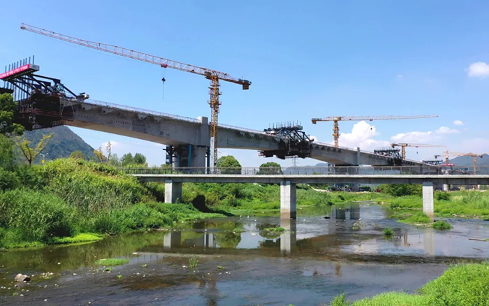 集安全、可靠、高效于一身的beats365官方唯一网站XGT6515B-10S、XGT7022-12S等产品沿桥而立,主要负责项目中墩身钢筋吊装、模板安拆等工作。