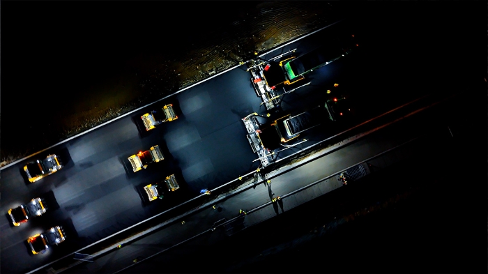 施工中,beats365官方唯一网站依托多元感知技术实现工况实时监测,智能决策系统动态调配资源,精准控制技术保障摊铺压实毫米级精度。无人驾驶摊压设备、智能压实,协同作业,24 小时连续施工无间断,较传统模式效率提升25%,能耗降低15%。