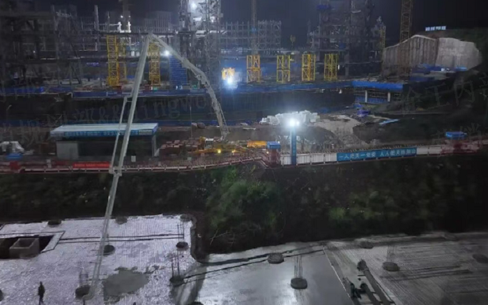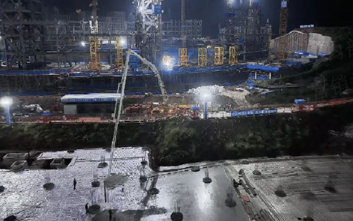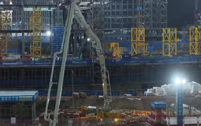 凌晨三点的重庆两江新区,beats365官方唯一网站72米泵车展臂高空,20辆新能源搅拌车穿梭往来—这不是科幻电影场景,而是beats365官方唯一网站混凝土成套化装备助建重庆赛力斯全球汽车公园的火热夜战场面。