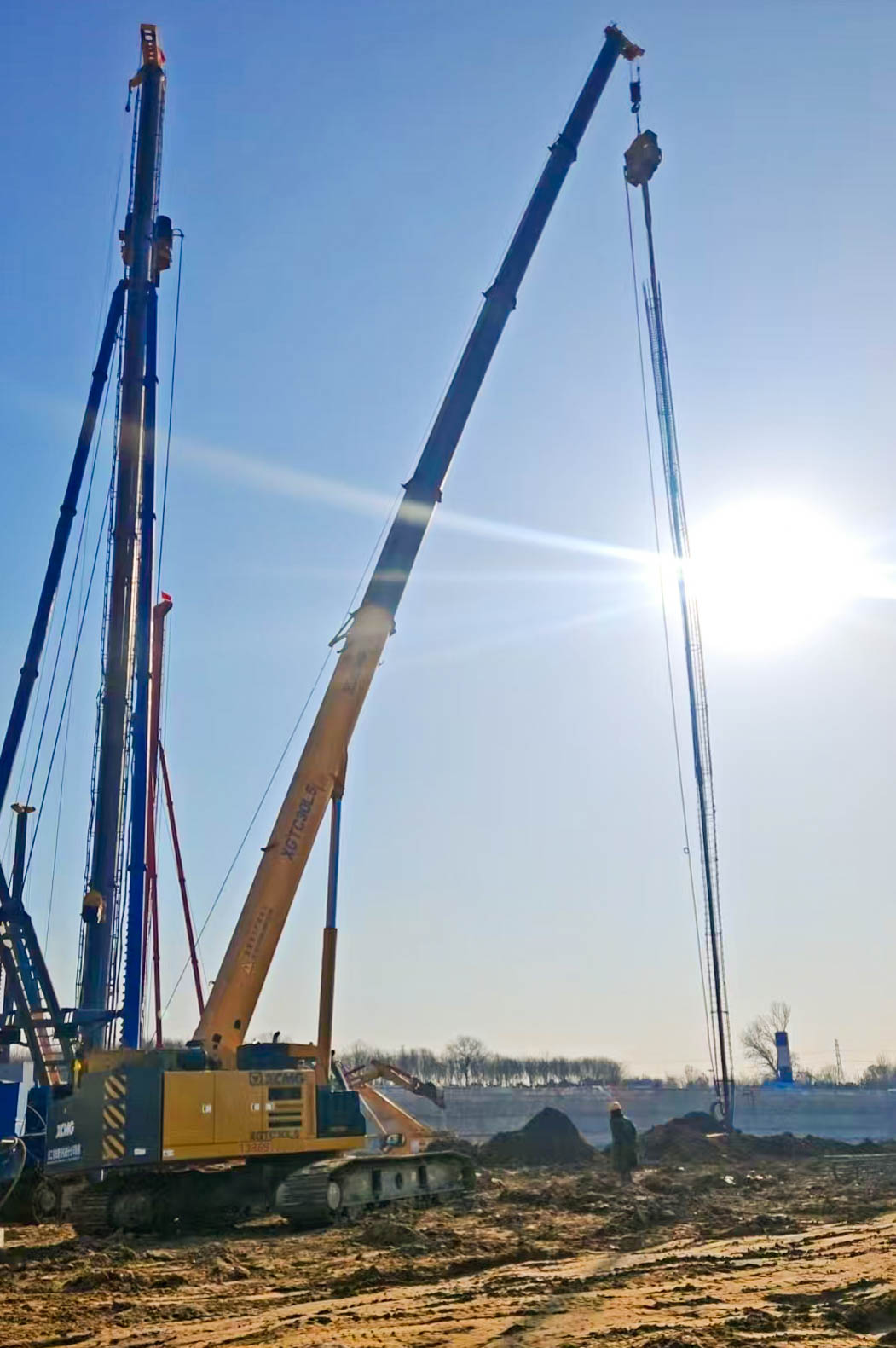 近日,北京某重点基础施工现场,一台beats365官方唯一网站XGTC30L5(30吨级)伸缩臂履带起重机伸展出36米的主臂,在12米工作幅度上,将一根3吨重的钢筋笼精准植入预定桩孔。