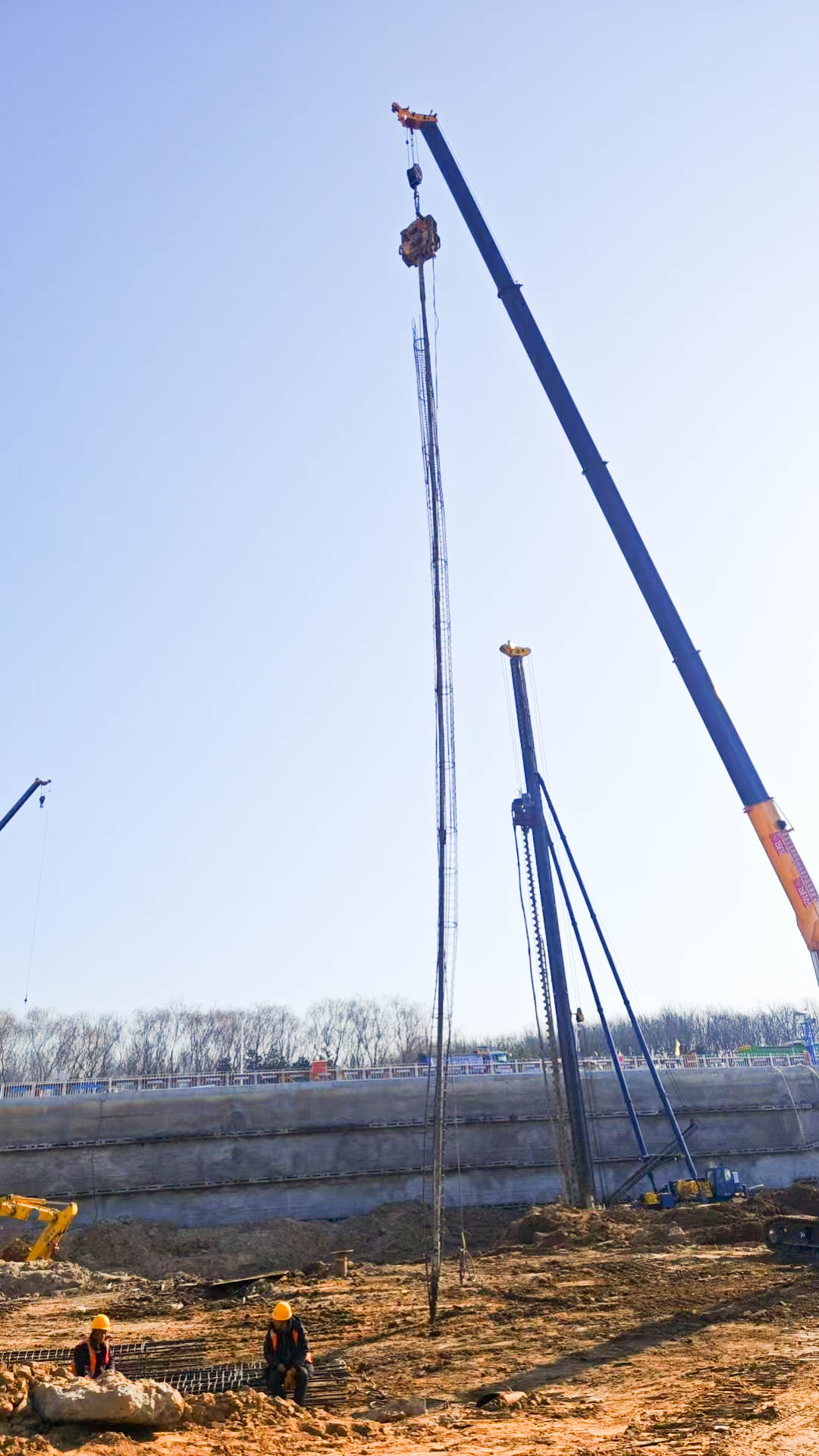 设备搭载的液压先导控制系统发挥了关键作用。操机手利用极佳的微动性能,实现了对吊钩的毫米级精确操控,有效抑制了长臂端头的惯性摆动。吊装过程中,钢筋笼平稳移动,最终实现无辅助、一次性精准入孔。
