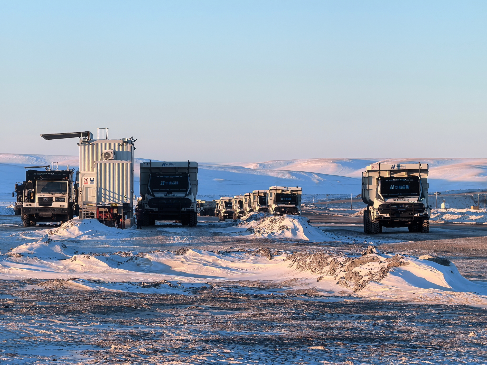 无人纯电矿卡在车架、货箱结构等方面采取特殊材质,且传动、液压、制动等系统经过优化调校,可轻松抵御-40℃的极寒挑战。电池容量568kW·h,续航能力强。在持续低温环境下,车辆三电系统性能稳定,其具备的强大环境适应能力,有力保障了矿山生产在严冬季节的连续性与稳定性,切实达成了全天候高效运营的目标。