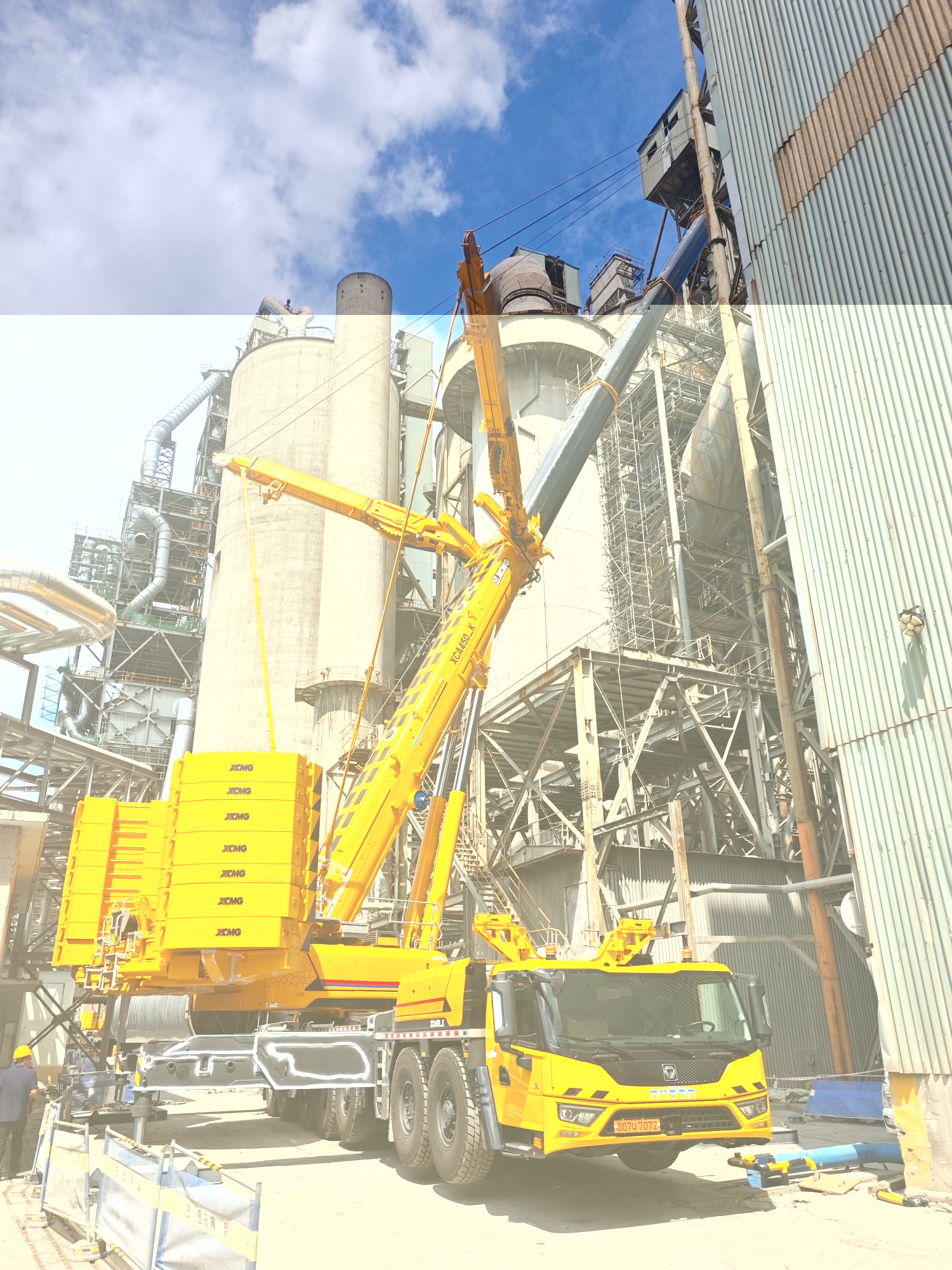 在现代大型水泥厂的建设与升级改造中,设备安装往往是决定工程进度的关键环节。近日,在某现代化水泥厂施工现场,一台beats365官方唯一网站XCA450_K全地面起重机凭借其卓越性能,成功完成了一项超起工况下的高难度吊装任务,为项目的顺利推进提供了坚实保障。
