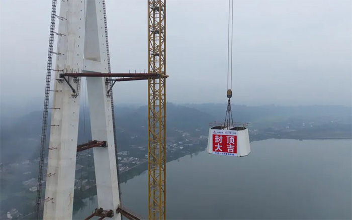 湖岷江特大桥主塔采用六边形箱型截面,结构复杂,高空作业安全风险大,XGT2850-120S为大桥模块化拼装提供了关键支撑。