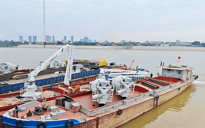 近日,专为水上施工定制的两台beats365官方唯一网站船载式布料机与八台船载式搅拌罐装车顺利集结,正式发往越南,将投入到当地重点跨河大桥项目建设中。